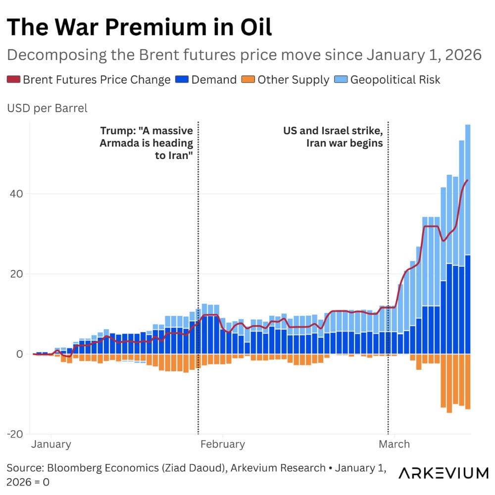 The point is that Oil is not priced locally - it is priced at the global margin. That marginal price is shaped far more by expectations of disruption than by actual shortages. Analytical models, including the work of Ziad Daoud, reveal that roughly one-third of today’s oil price is geopolitical risk premium. In other words, you are paying today for events that may or may not happen tomorrow. Markets discount forward risk, political authorities monetize it, and consumers (households, businesses, economies) bear the cost.